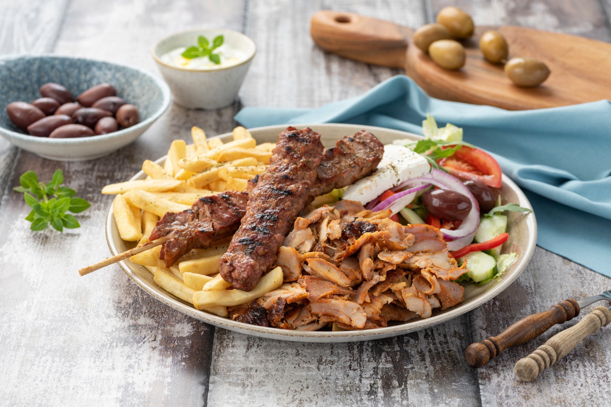 Prawie 30 lat serwujemy Państwu oryginalne potrawy kuchni greckiej. Szczególną rolę w naszym menu odgrywa GYROS. Przygotowujemy go ze starannie wybranych płatów mięsa marynowanych z dodatkiem ziół greckich. Następnie nabijamy na pionowy ruszt i opiekamy. Upieczone mięso, soczyste w środku, chrupiące na zewnątrz serwujemy z dodatkiem tzatzików, sałatki greckiej, frytek lub w oryginalnej greckiej bułce pita. Wybierz swój zestaw i spróbuj jak smakuje PRAWDZIWY GRECKI GYROS.